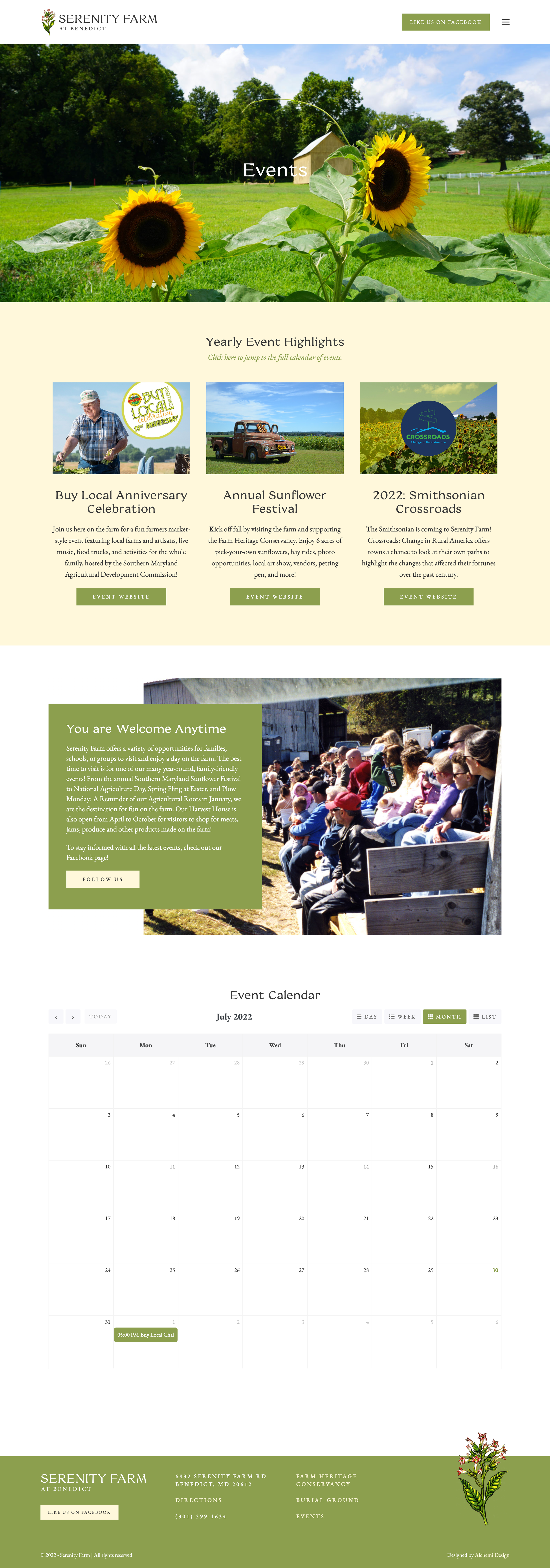 Serenity Farm is a family-owned farm located in Benedict, Maryland and they were looking for a minimal website design that would help them promote events throughout the year and share the story of the burial ground of enslaved persons discovered on the property in 2012. The farm maintains the burial ground and honors the memories of those buried there by telling their stories.